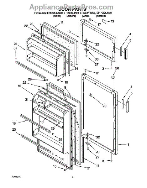 Parts for Whirlpool ET17CKYJW00: 02 - Door Parts
