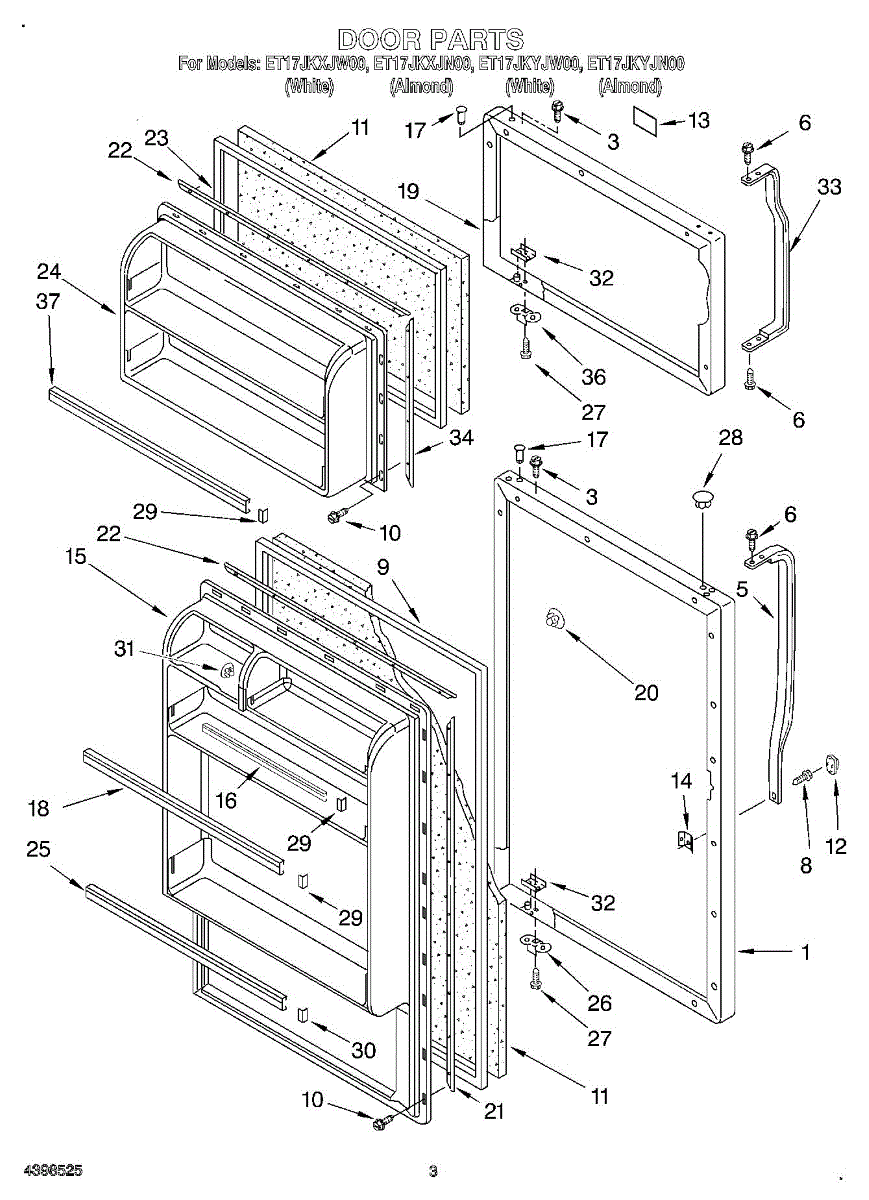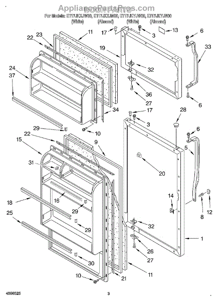 Parts for Whirlpool ET17JKXJN00: 02 - Door Parts