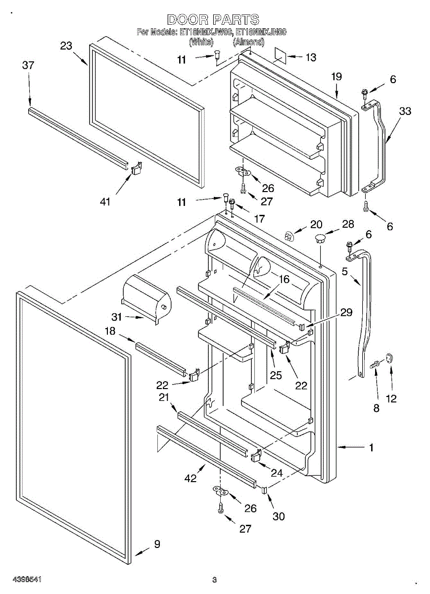 Parts for Whirlpool ET18NMXJN00: 02 - Door Parts