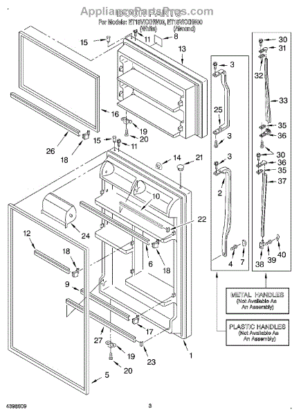 The Door Handle Kit is an OEM part for Whirlpool refrigerators. It contains both door handles, linkage, fasteners, and installation instructions needed to operate the refrigerator doors. Please note: Handle may be longer, this is a "cut to fit" design. For white order WP2162555. No longer made in almond. Includes both refrigerator and freezer door handles. Symptoms of a bad door handle kit include: