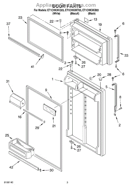 Parts for Whirlpool ET1CHKXKQ03: 02 - Door Parts