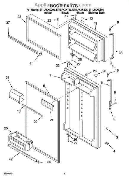 Parts for Whirlpool ET1LFKXKT05: 02 - Door Parts