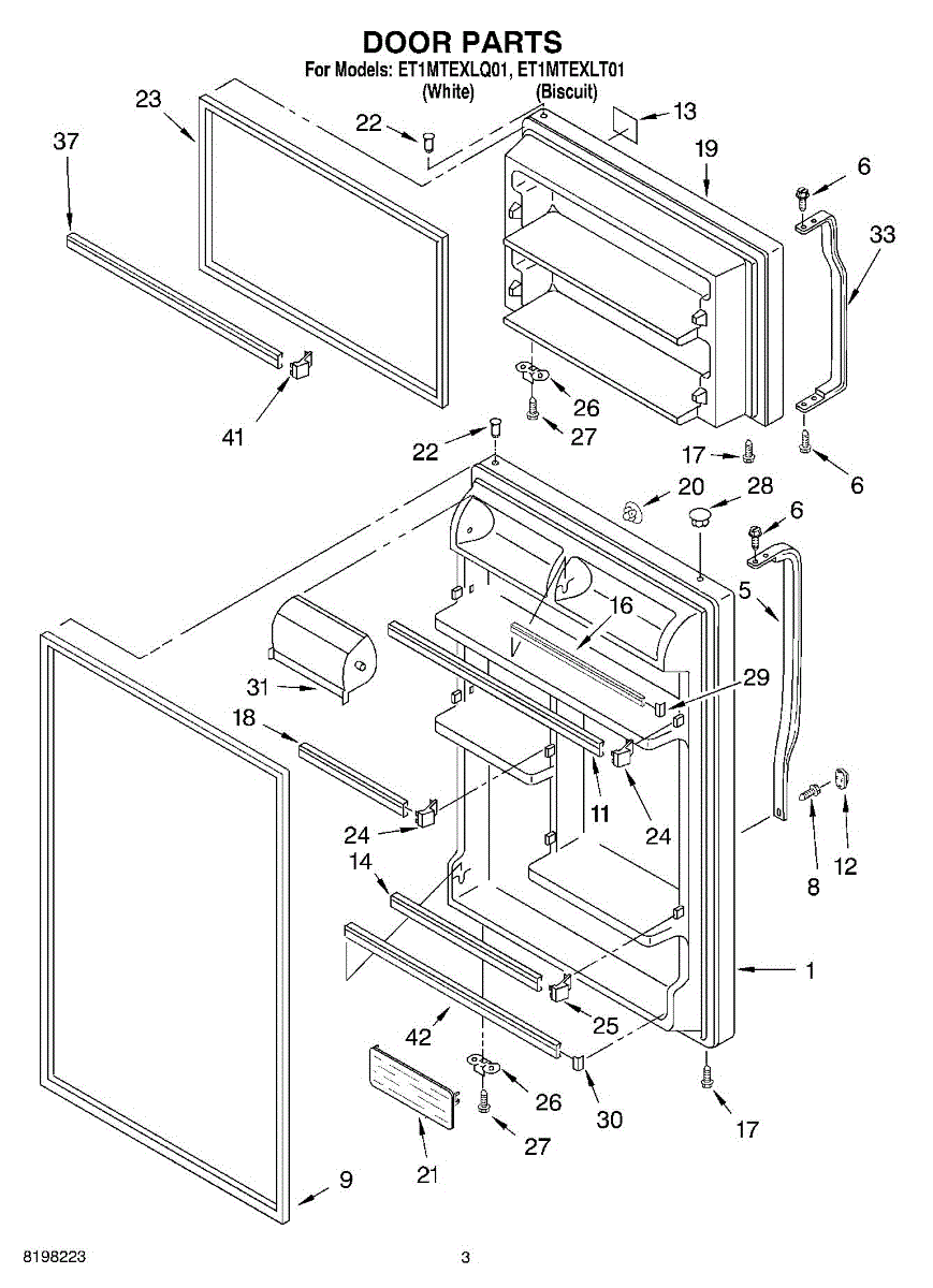 Parts for Whirlpool ET1MTEXLT01: 02 - Door Parts