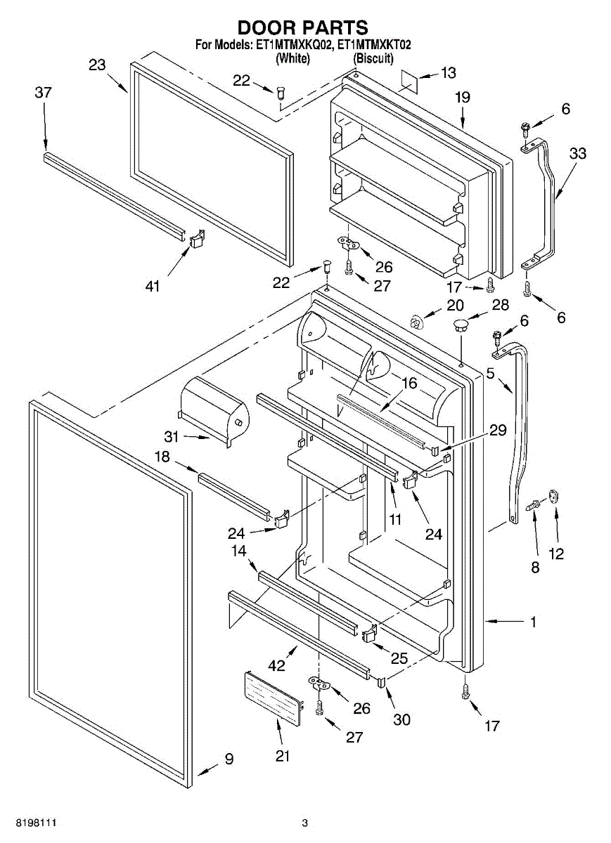 White refrigerator door panel assembly. Replaces cracked, discolored, or damaged exterior door panels. Installs on the front of your fridge door.