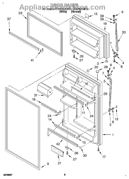 Parts for Whirlpool ET20NMXDN00: 02 - Door Parts