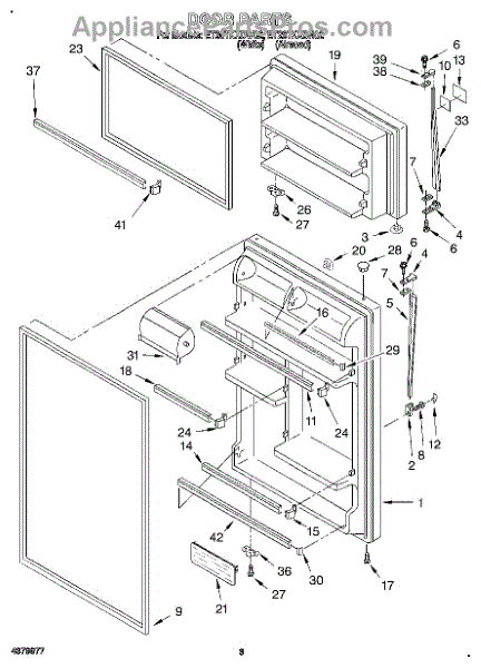 White refrigerator door panel assembly. Replaces cracked, discolored, or damaged exterior door panels. Installs on the front of your fridge door.
