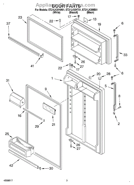 Parts for Whirlpool ET21LKXHW01: 02 - Door Parts