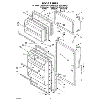 Parts for Whirlpool ET4WSKXKZ01: 02 - Door Parts