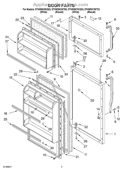 Parts for Whirlpool ET4WSKYKQ03: 02 - Door Parts
