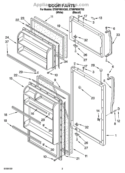 Parts for Whirlpool ET8BPMXKT02: 02 - Door Parts