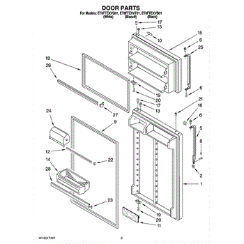 Parts for Whirlpool ET8FTEXVB01: 02 - Door Parts