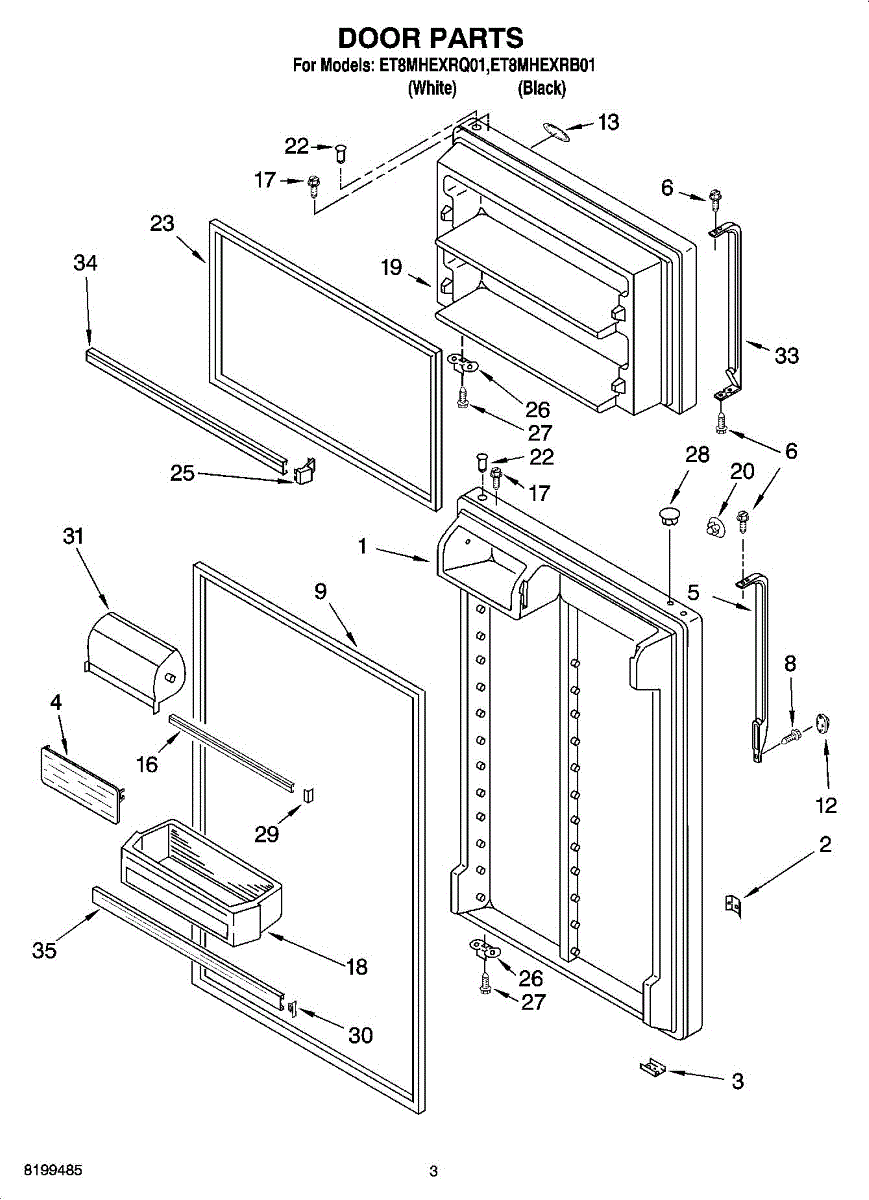 Color: Black. For white order WP2202807W. For biscuit order WP2202807T. For the freezer door handle in black order WP2202806B.