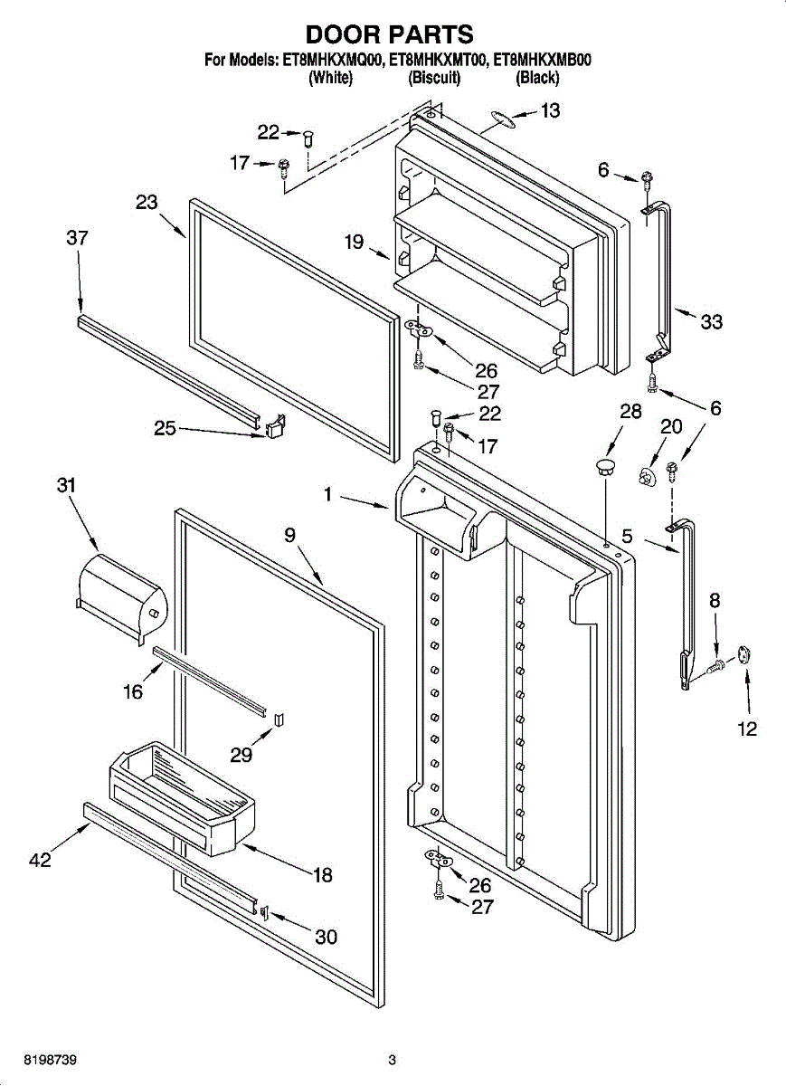 Color: Biscuit. For white order 4388947. For black order WP2202806B. For the refrigerator door handle in biscuit order WP2202807T.