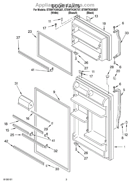 Parts for Whirlpool ET8WTKXKQ07: 02 - Door Parts