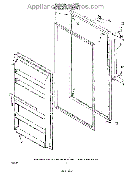 Parts for Whirlpool EV110EXPW0: 02 - Door Parts