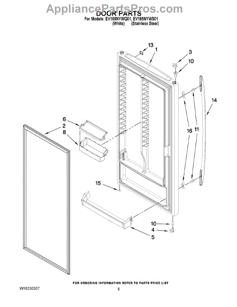 Parts for Whirlpool EV188NYWQ01: 03 - Door Parts
