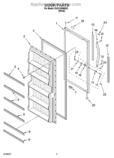Parts for Whirlpool EV201NXMQ01: 03 - Door Parts