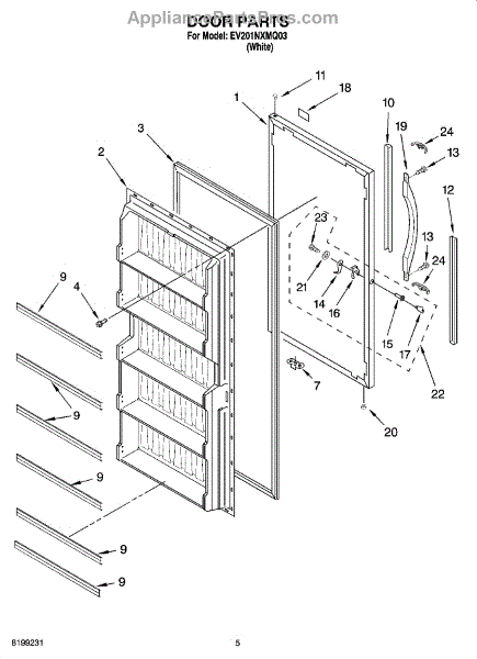 Parts for Whirlpool EV201NXMQ03: 03 - Door Parts