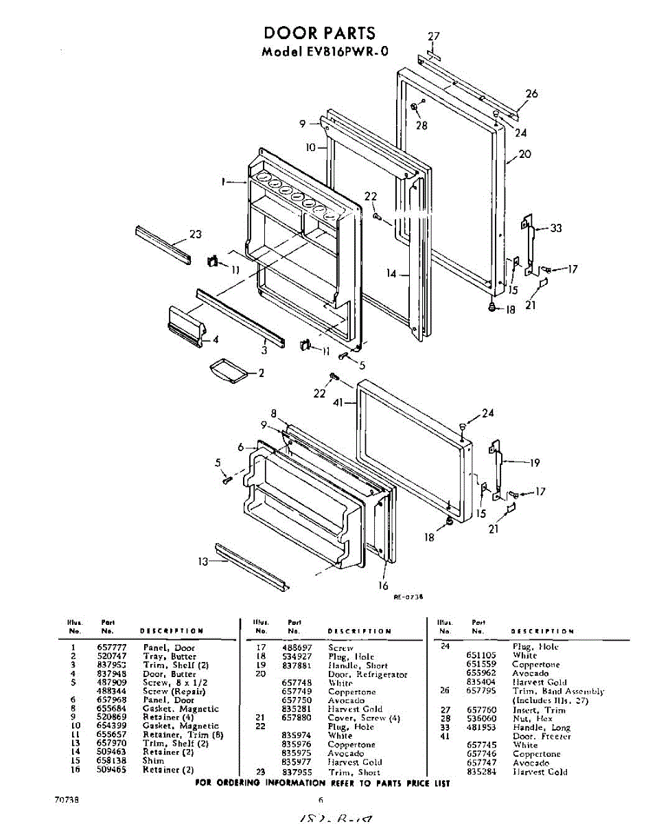 Parts for Whirlpool EVB16PWR0: 06 - Door Parts