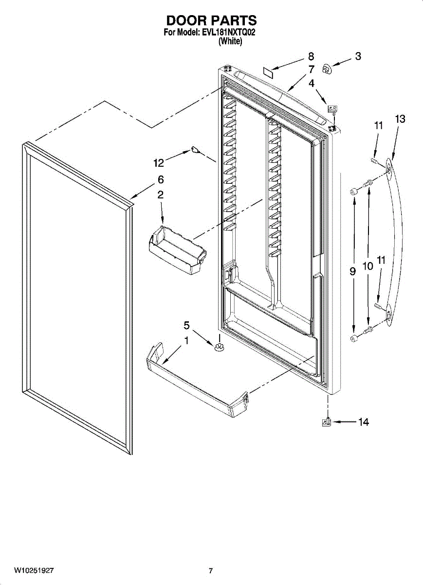 Face-mount door handle assembly for refrigerators and freezers. Replaces cracked, bent, loose, or broken handles. Direct-fit replacement for original hardware.