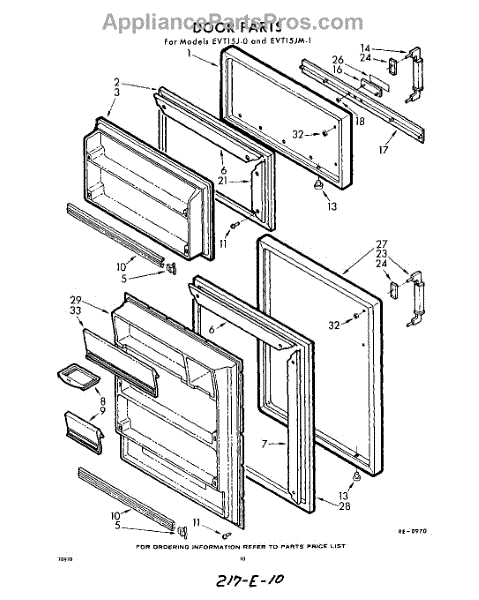 Parts for Whirlpool EVT15J0: 10 - Door Parts