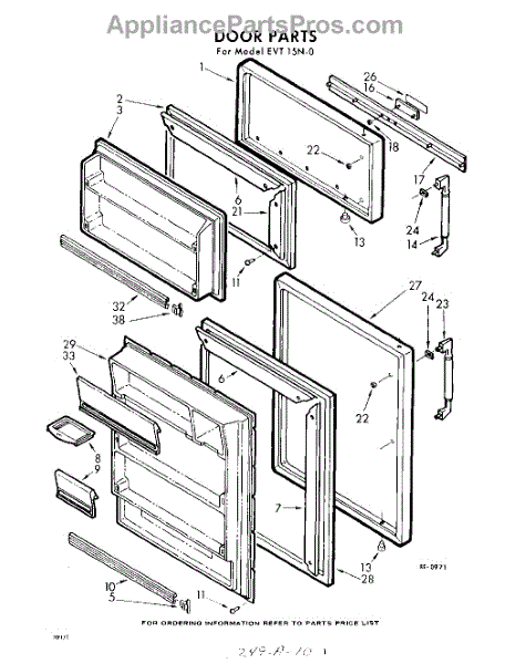 Parts for Whirlpool EVT15NWR0: 10 - Door Parts