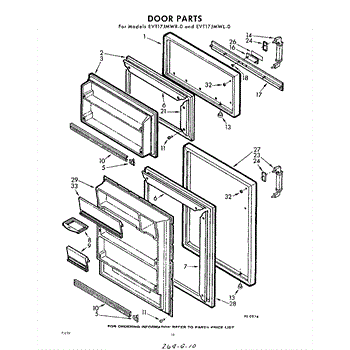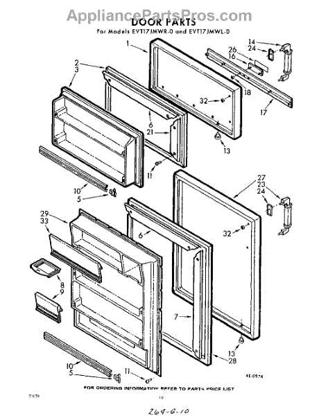 Parts for Whirlpool EVT17JMWR0: 10 - Door Parts