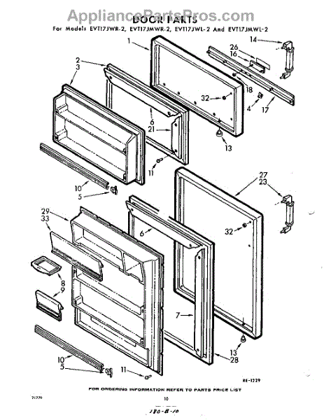 Parts for Whirlpool EVT17JWR2: 10 - Door Parts