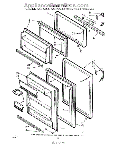 Parts for Whirlpool EVT51ZMWR0: 10 - Door Parts