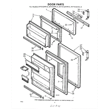 Parts for Whirlpool EVT51ZWR0: 10 - Door Parts