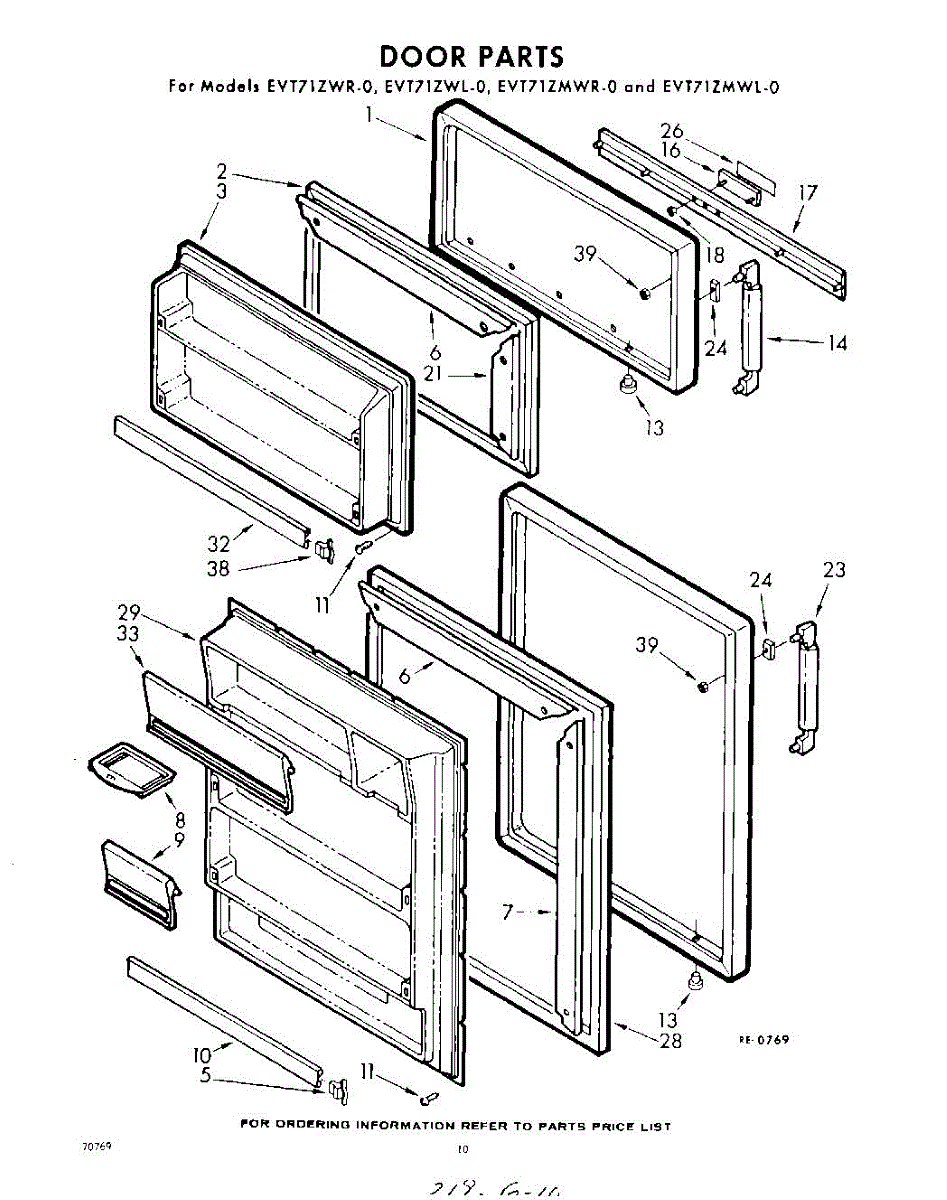 Parts for Whirlpool EVT71ZMWR0: 10 - Door Parts