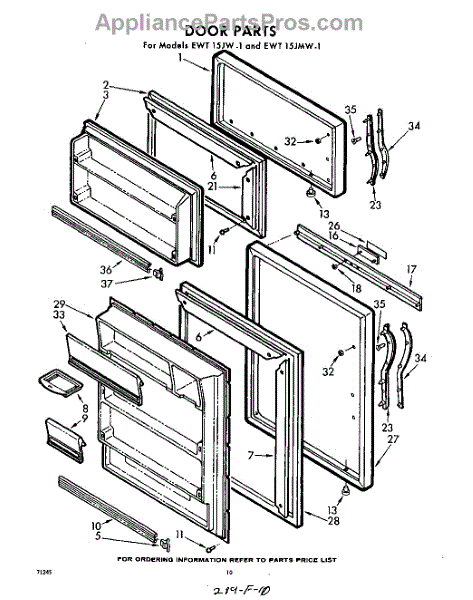 Parts for Whirlpool EWT15JMW1: 10 - Door Parts