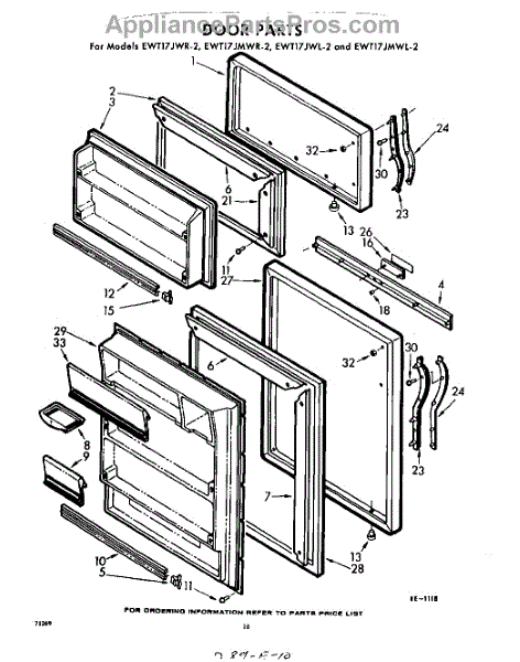 Parts for Whirlpool EWT17JMWR2: 10 - Door Parts