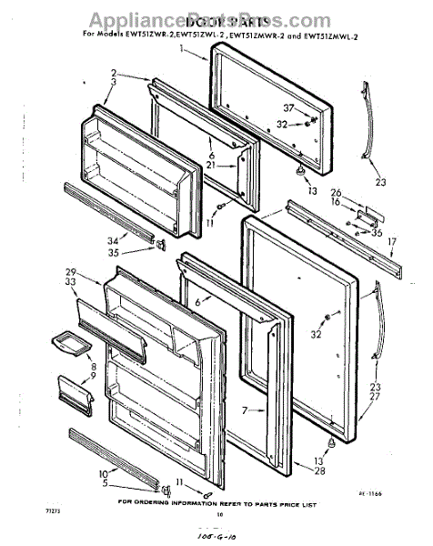 Parts for Whirlpool EWT51ZMWR2: 10 - Door Parts