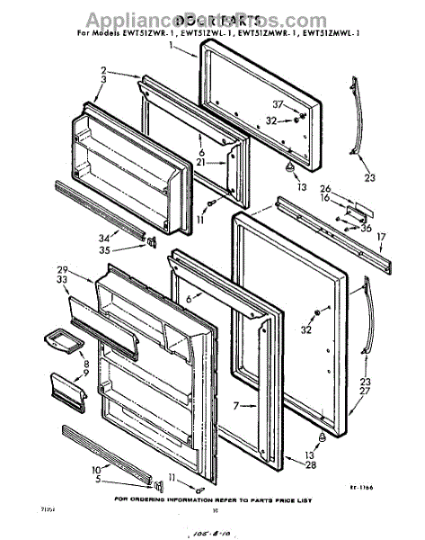 Parts for Whirlpool EWT51ZWR1: 10 - Door Parts