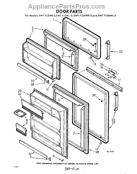 Parts for Whirlpool EWT71ZWR0: 10 - Door Parts