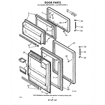 Parts for Whirlpool EXT13JTWR1: 10 - Door Parts