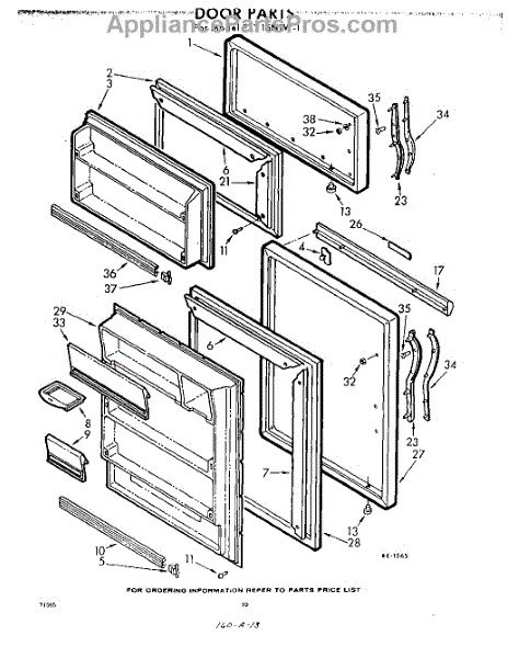 Parts for Whirlpool EXT15NTW1: 10 - Door Parts