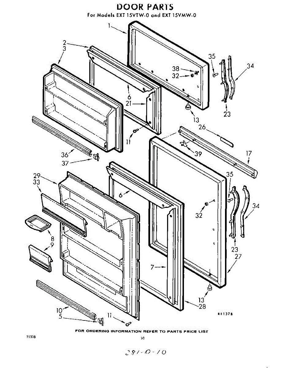 Parts for Whirlpool EXT15VMW0: 10 - Door Parts