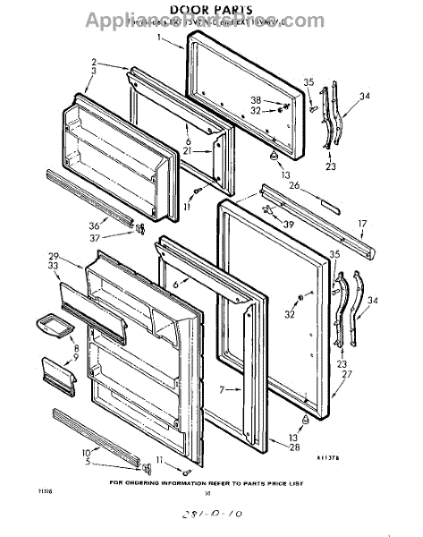 Parts for Whirlpool EXT15VTW0: 10 - Door Parts