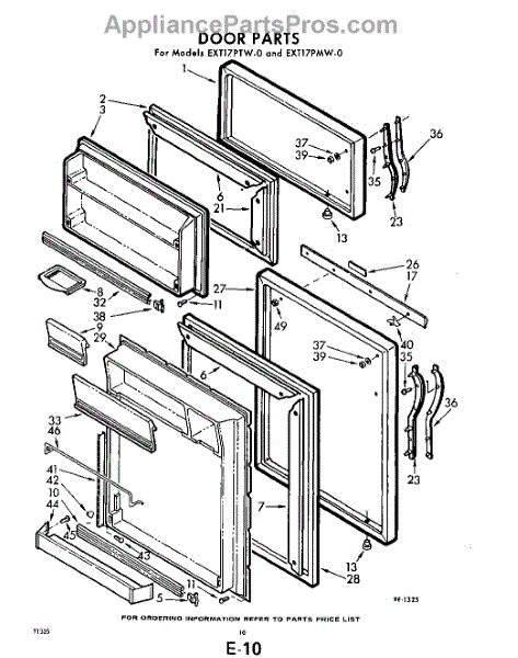 Parts for Whirlpool EXT17PTW0: 10 - Door Parts