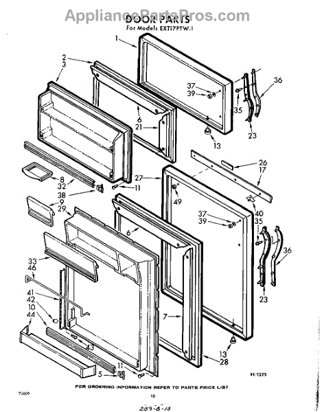 Parts for Whirlpool EXT17PTW1: 10 - Door Parts