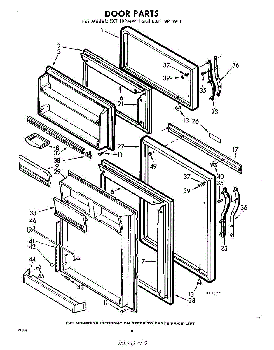 Parts for Whirlpool EXT19PMW1: 10 - Door Parts