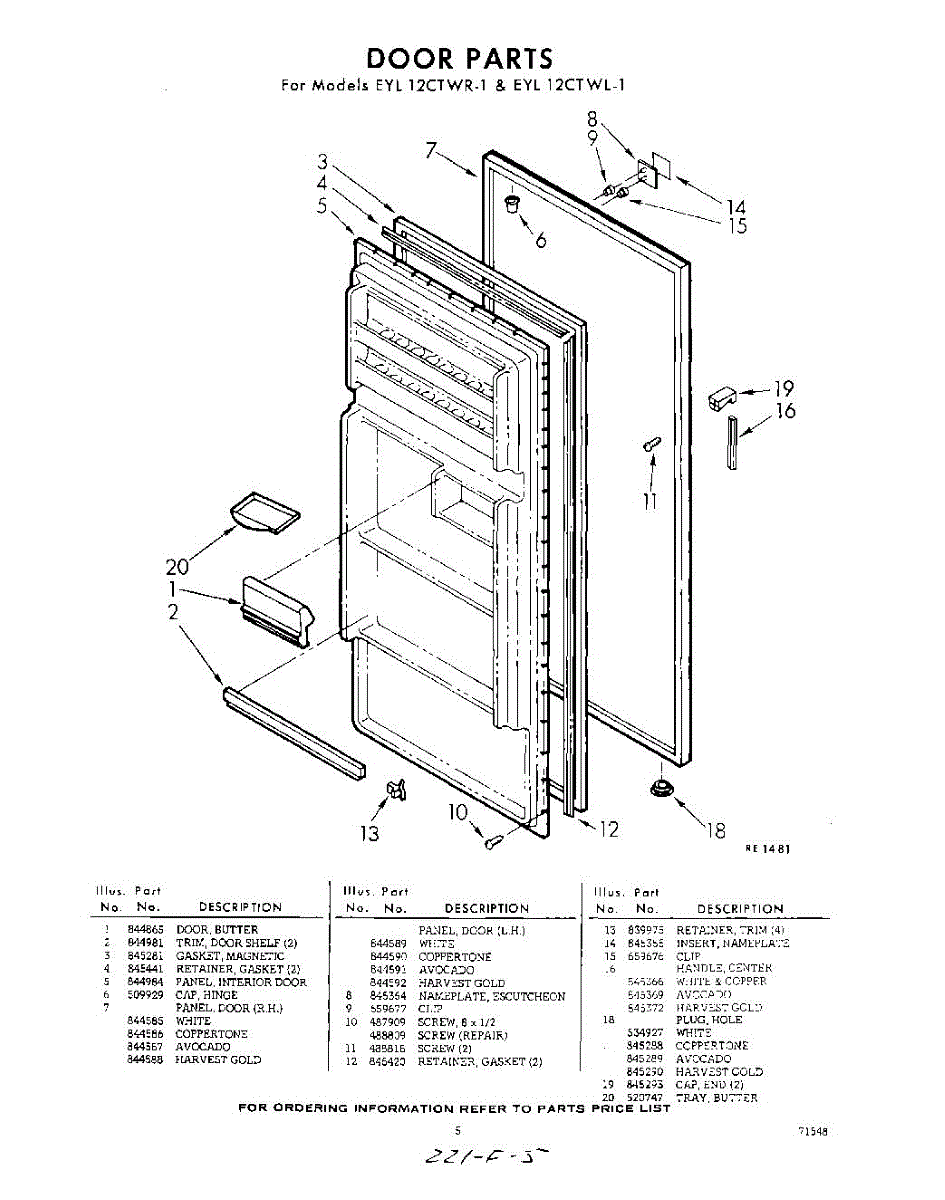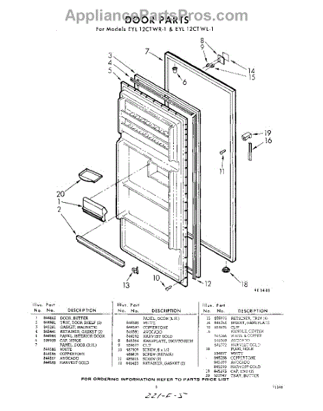 Parts for Whirlpool EYL12CTWR1: 05 - Door Parts