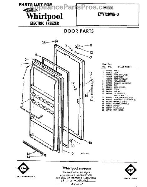 Parts for Whirlpool EYV12DWR0: 01 - Door Parts