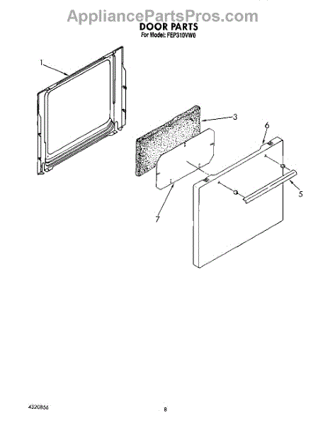 Parts for Whirlpool FEP310VL0: 05 - Door Parts