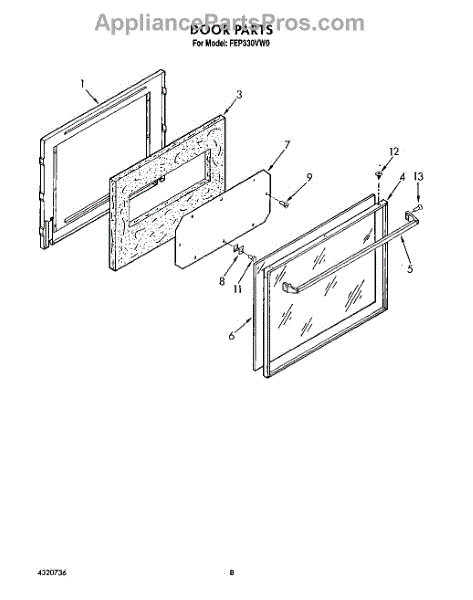 Parts for Whirlpool FEP330VL0: 06 - Door Parts
