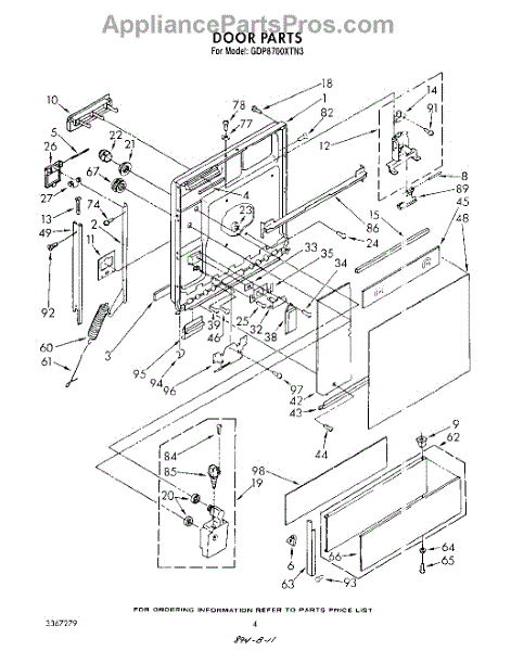 The Dispenser Cover Kit is an OEM replacement part for Whirlpool dishwashers. It includes both the outer lid that protects the detergent and rinse aid compartments as well as the latch mechanism securing it closed. This dishwasher dispenser kit included the cover, lid hinge pin, spring, snap, and latch.