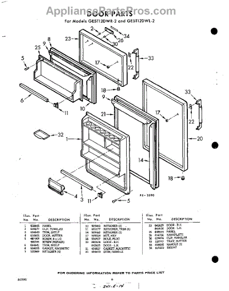 Parts for Whirlpool GEST12DWR2: 06 - Door Parts