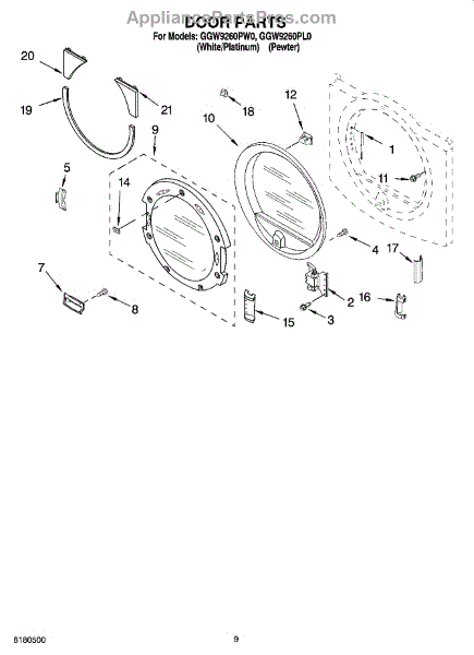 Parts for Whirlpool GGW9260PL0: 05 - Door Parts